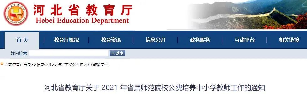 根据河北省教育厅发布的《关于2021年省属师范院校公费培养中小学教师工作的通知》,今年将在河北师范大学公费培养中学教师200名、小学全科教师300名,在参加普通高校全国统一招生考试的考生中,实行提前批次录取。公费师范生在校学习期间免缴学费、住宿费,并补助生活费。