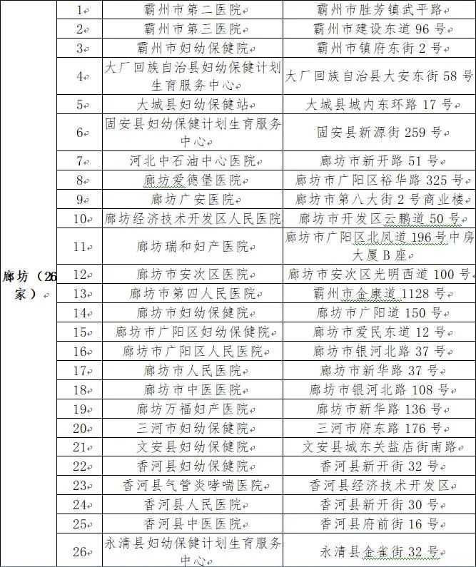 近日,河北省卫生健康委员会发布了2021年全省孕妇无创产前基因免费筛查项目定点产前诊断机构11家,其中廊坊市1家,为廊坊市妇幼保健院;项目定点产前筛查机构281家,其中廊坊市26家。