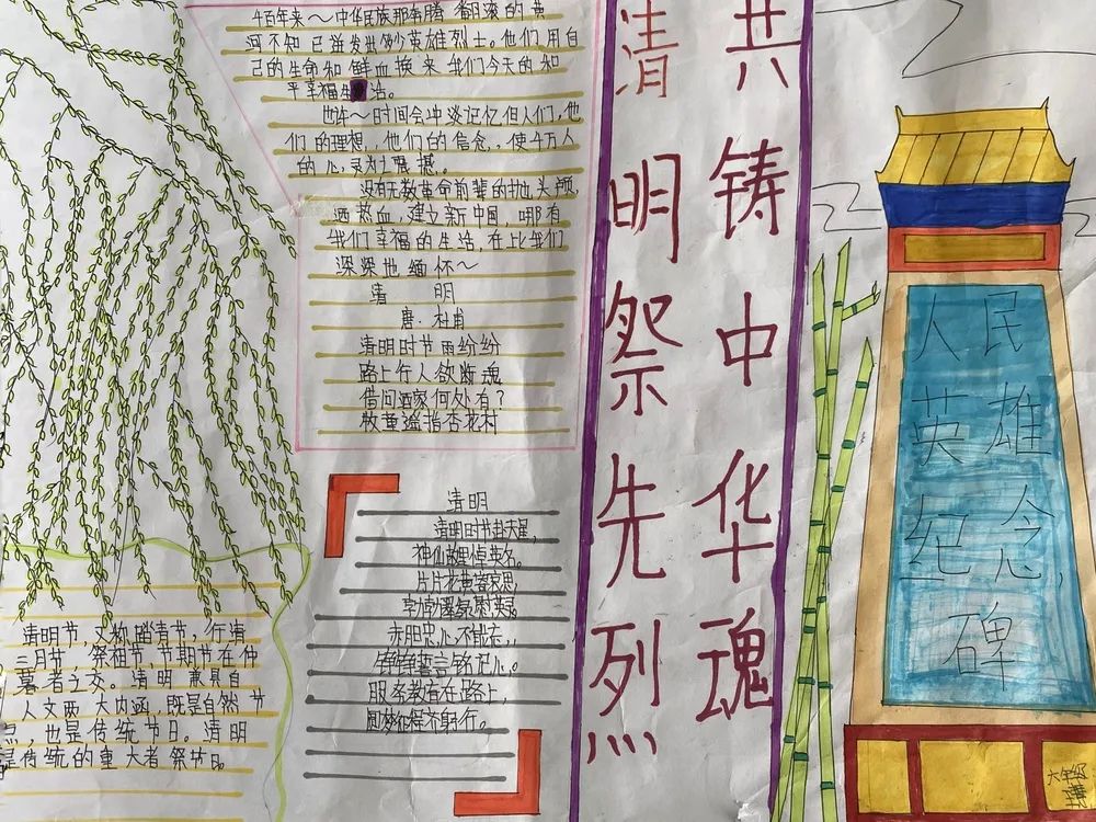 六、开展一次手抄报、征文活动学校少先队开展以“清明祭英烈·共铸中华魂”为主题的手抄报、征文活动,引导少先队员们继承先烈遗志,弘扬先烈精神。