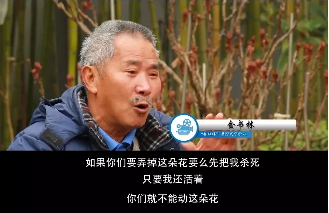 据金家第22代守护人金书林先生讲述,在“文革”时期曾有红卫兵欲将此花摧毁,但他父亲以身护花。“如果你们要弄掉这朵花要么先把我杀死,只要我还活着,你们就不能动这朵花。”至此,才将这株具有历史人文价值的古牡丹保留了下来。