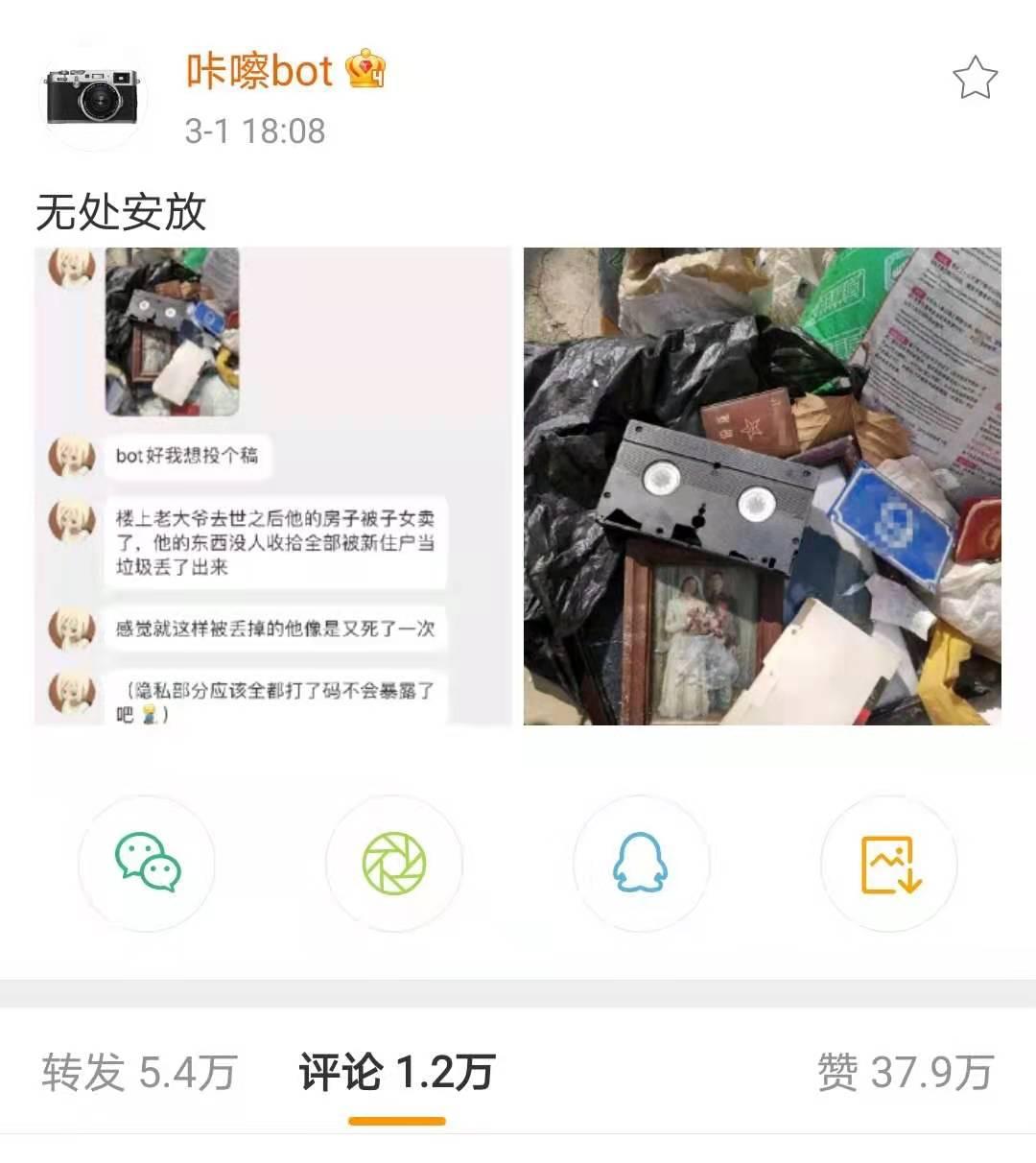 该网友楼上住了一个老大爷,大爷去世之后,他的子女将房子卖掉后,却没人收拾大爷的遗物,大爷的遗物被遗弃在房子里。新住户入住之后,这些遗物被当成垃圾打包丢进了垃圾桶里。
