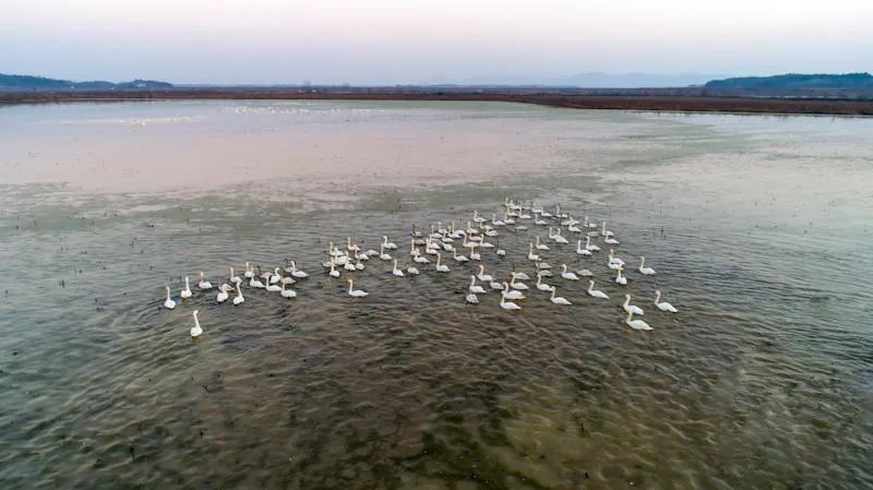 西凉湖中野生莲藕、芡实、蒿笋、菱角、莼菜及各种水草生长繁茂。还盛产多种淡水鱼类,同时也是野鸭、白鹭等水鸟的栖息地。人与鸟,构成了一幅和谐的自然画卷。黄盖湖