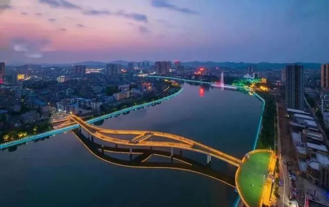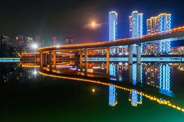 夜幕降临,华灯璀璨。从东洲3D人行桥上望去,陆水河一河两岸美景与古城风貌相映成趣,淋漓尽致地展现着华贵、浪漫、大气的赤壁之夜。