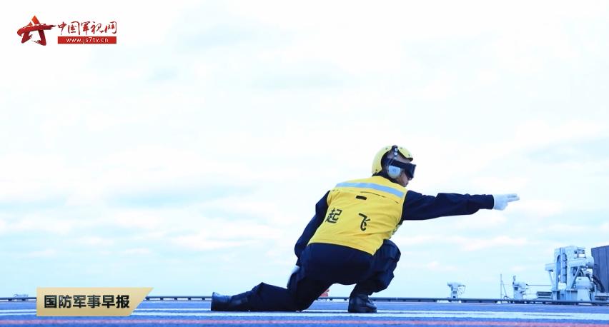 在甲板上一共有3条滑跃起飞跑道。每当歼-15舰载机准备起飞时,起飞助理必须沉着冷静、干脆利落地做出放飞动作。