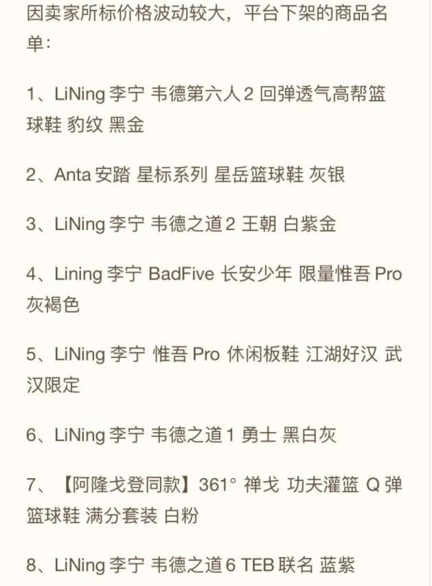 3、除上述三款球鞋,得物同时对全平台商品进行核查,另发现20款球鞋存在卖家所标价格波动较大的问题,对这些球鞋都做了下架处理,并对3名涉嫌恶意影响商品标价波动的卖家采取封禁措施。