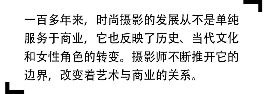 摄影作为广告,直到20世纪初才流行起来。19世纪末,知名时尚杂志 Harper’s Bazaar 和 Vogue 的封面从手绘图片开始转型结合摄影图片。1913年,Condé Nast 聘请了阿道夫·德·梅耶尔(Adolph de Meyer)为 Vogue 拍摄模特、女演员和贵族的肖像,那之后,照片开始广泛应用于时尚界。20世纪初正值欧洲繁荣优雅的黄金时代,杂志试图通过创新的摄影形式和迷人的模特来捕捉城市的精神和时尚,巴黎是当时时尚的中心,在这里,火热的超现实主义思潮对时尚摄影产生了深远的影响,达利(Salvador Dali)的画作、曼·雷(Man Ray)的照片潜意识里挑战了人们对现实的感知,塞西尔·比顿(Cecil Beaton)优雅的上流社会照片、霍斯特·P·霍斯特(Horst P Horst)融合超现实主义和古典光影魅力的摄影大放异彩。