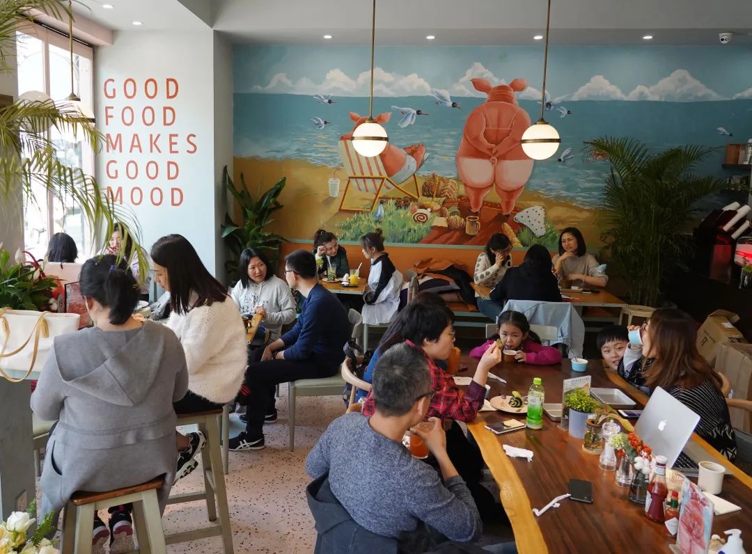 如果说Akimbo、Element等走的是网红时尚路线,那么,主打轻食+咖啡的粉猪可以说是一家社区型的咖啡店,老老少少都爱光顾。四年多前,主理人陈娜在选址时,第一眼就喜欢上了梧桐掩映的愚园路。因为看中的这个店面上一家是面包店,街区运营方要求她,一定要有面包,要服务好社区居民,于是,她开始配合做面包。开始时,她觉得很累,但慢慢地走出了自己的一条路,烘焙特色也让店的定位越来越清晰。顾客早上可以咖啡配面包,中午咖啡配简餐,下午咖啡配甜品,选择更加多样化。