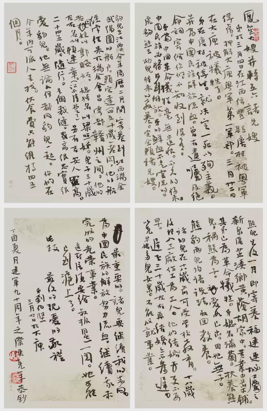 书法四联首幅,右上可盖印首小长形章,其馀不可盖,如统统盖上,行气就破坏了。