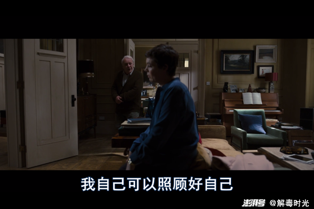 影片的剧情很简单,不过独特之处在于,用电影语言构建了以这位患有阿尔兹海默症的父亲视角为主的叙事,让人可以在近乎悬疑猜谜的画面转换和情节推进中,最终获得一个自我认知模糊,对外界感知和记忆混乱的老人的生活状态。在无序的记忆里,感受到那位老人倔强的尊严之下的那种无助和孤独。