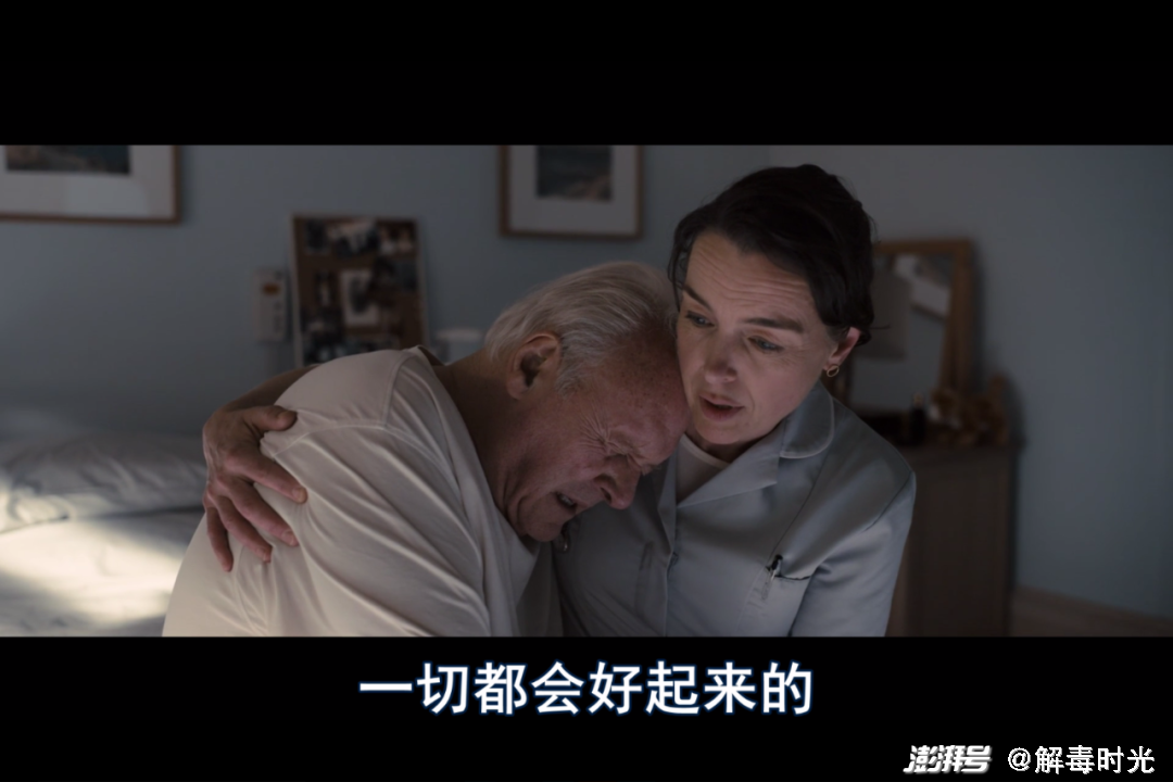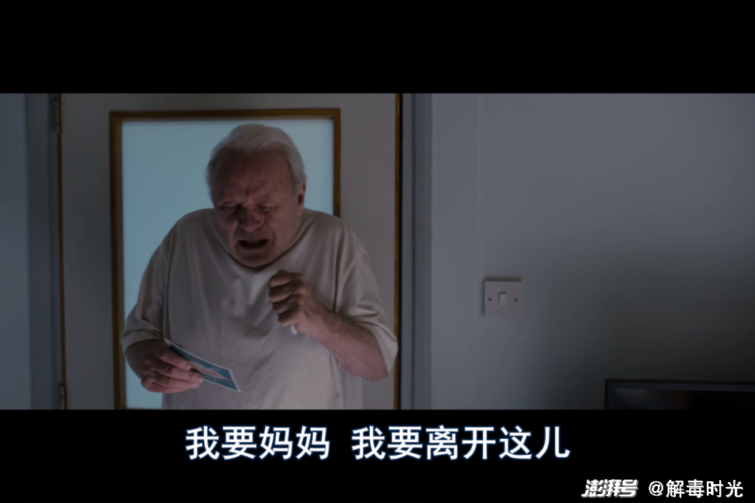 影片最后,当父亲在一个平常的日子里醒来,惯常的以为自己还在家里,结果发现在一个完全陌生的环境里,周围是不认识的医生和护士,父亲瞬间被这个现实击溃了,他像个孩子一样问着我是谁,说着我想妈妈了。