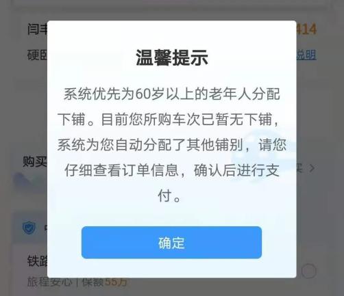 铁路12306对网络售票系统进行了优化调整,在票量充足的情况下,能自动识别60岁以上的老年旅客并优先安排下铺。如果是多人同行一份订单,系统也会自动分配相邻座位。所以,想为老人购买下铺票的朋友,要提前规划行程,尽早购买火车票。