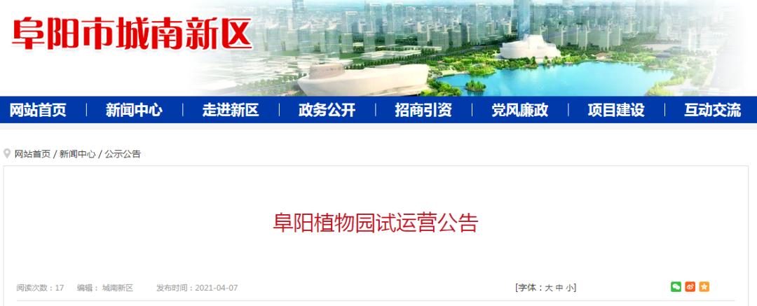 阜阳植物园拟于2021年4月8日开始试运营,现将相关事宜公告如下:一、开闭园时间