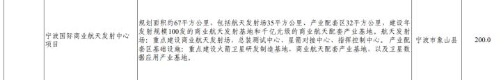 日前,浙江省发布《浙江省重大建设项目“十四五”规划 (征求意见稿)》,规划中提到:总投资200亿元的宁波国际商业航天发射中心项目,将在宁波市象山县开建,“十四五”期间先投资120亿元。