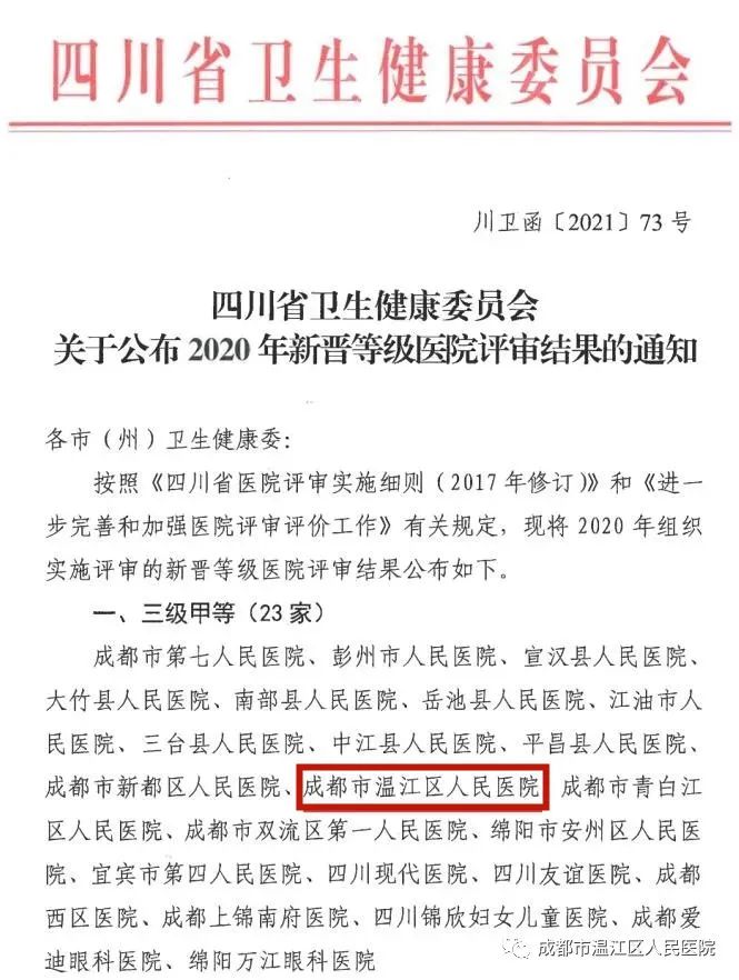 温江融媒体中心记者| 耿文君、郑希原标题:《温江医院晋升“三甲”“三乙”!》