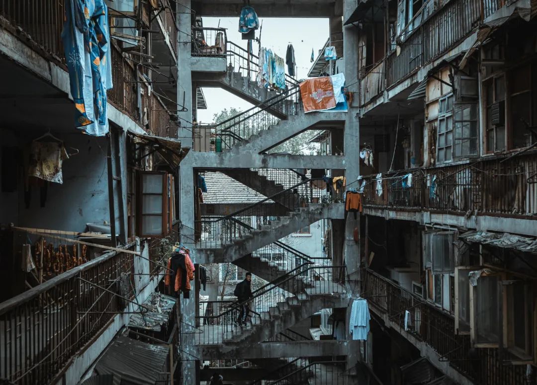 鸳鸯楼是一栋老楼,两边各七层,中间盘旋着反复的楼梯。这里原来是川大的职工楼,距今已有六七十年。