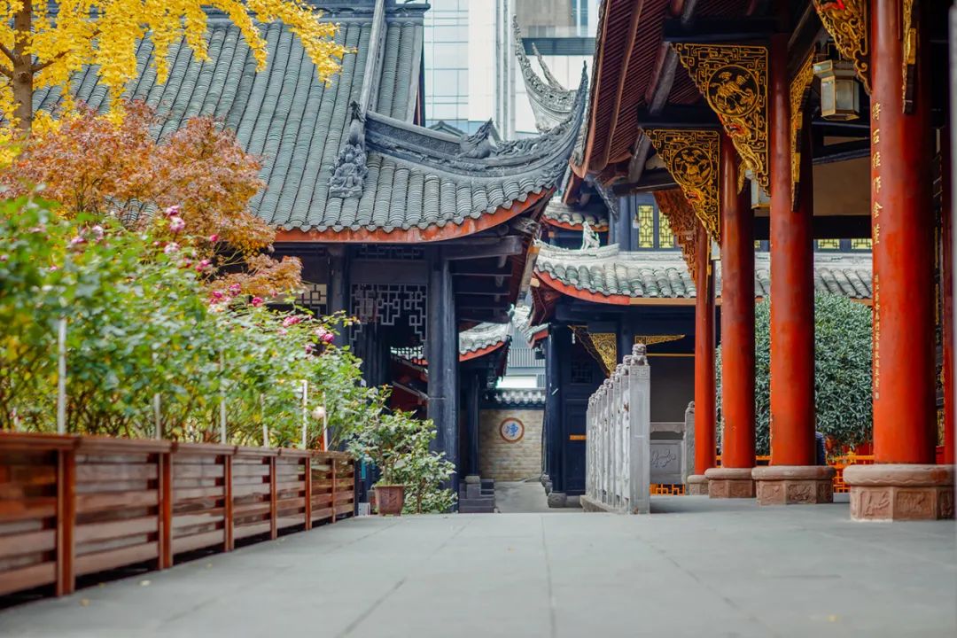 看过电影的人,一定对姐姐去拜访的寺庙印象深刻。其实,这里就是成都著名古刹大慈寺。位于市中心,大慈寺与太古里仅一墙之隔,可谓闹市中的一方净土。