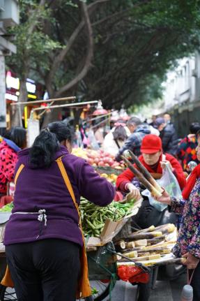 下午四五点钟,玉林市场就鲜活了起来,此起彼伏的叫卖声,售卖着鲜嫩欲滴的春天,水灵灵的番茄,沾着露水的香椿。即使原本不打算来买菜,也架不住摊主的热情,总想带点什么回去。