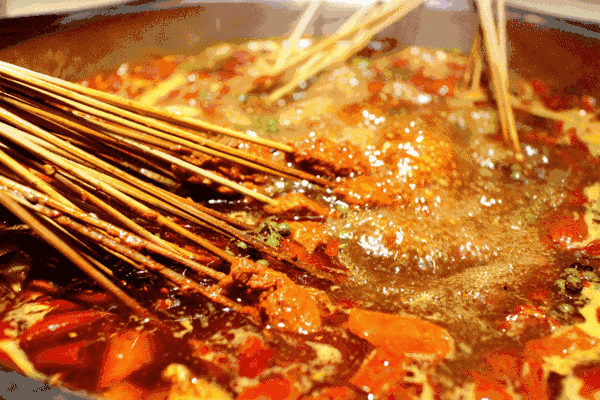 串串、冒菜、钵钵鸡等差不多都是把食材放到麻辣锅底里煮,竹签串着的是串串,冷锅的类似于钵钵鸡便是其中一种,差不多算是简易版或改良版的火锅吧。走在路上,逛累了,随时都能来上几串,补充了体力,也满足了胃。