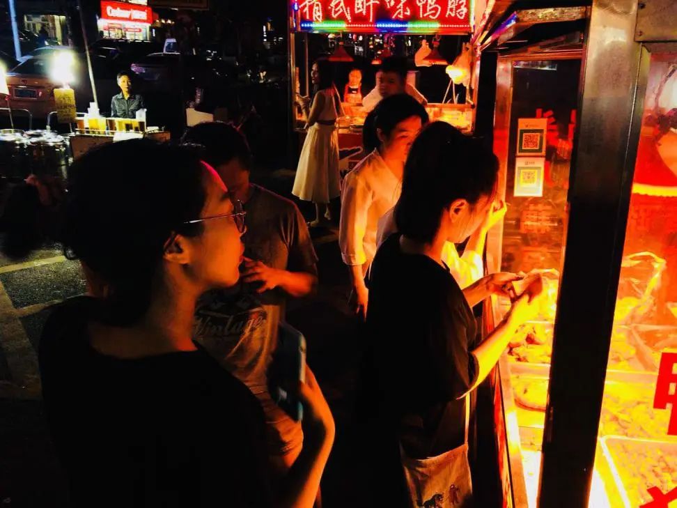 一条不到500米的单向线,马路两边停满了车辆,中间勉强能容纳两辆车的空间还时刻有人行穿梭,导致过路车辆时速不可能超过20码。街道两侧,是灯火通明的餐馆,小龙虾和烧烤称霸了这条街。6月正是吃虾的旺季,人潮汹涌,要在靓靓蒸虾的店里正经坐下,绝不是一件容易的事情。而万松园的常客们,有自己的食法。