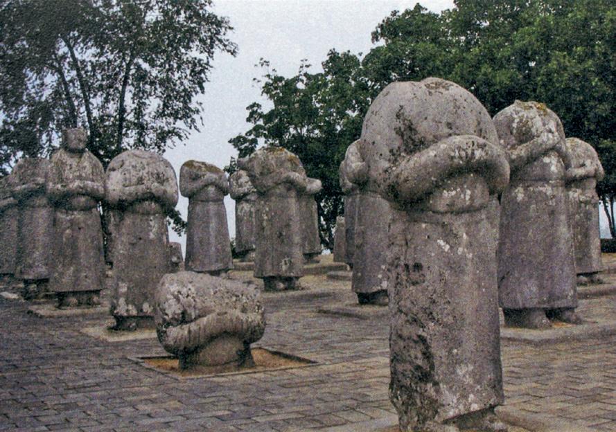 现存唐乾陵六十一蕃王像第三个方面是重用蕃将统军。出土的墓志中,我们发现外来民族的蕃将有很多,其中最有名的是突厥人:阿史那社尔、阿史那忠、阿史那思摩等。还有一些来自其他国家的人,也都可以担任唐朝军队里的武将,有的在朝任职,有的戍边守疆。唐玄宗时期,曾以外族将领32 人代替汉族将领,拱卫中原,他们成为支撑这个帝国的重要柱石。当然这也给一些野心家机会,引发了后来的安史之乱。但从中可以看出,这一时期有很多外族人担任了唐朝军队里的高官,他们效忠朝廷,为唐朝护国守疆,成为史书中记载的“名将”。
