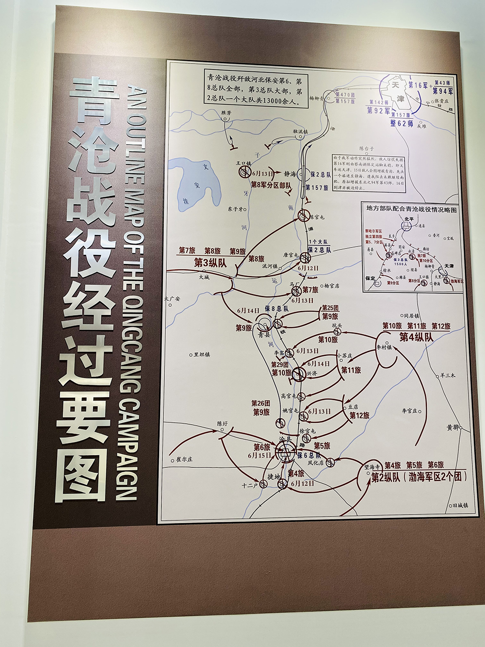 据史料记载,青沧战役是由晋察冀野战军杨得志司令员、罗瑞卿政委亲自指挥。“打沧州的部队,5月中旬陆续到达沧县城东南茅草洼、店子一带驻扎,当时支前工作由渤海区一分区负责,我任指挥,负责粮秣和作战器材的筹集、制作及民工、担架队的组织工作,并协助参谋部找熟悉城内情况的人,调查了解城市地形和敌人兵力及部署情况。”王沛云写道。