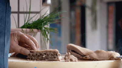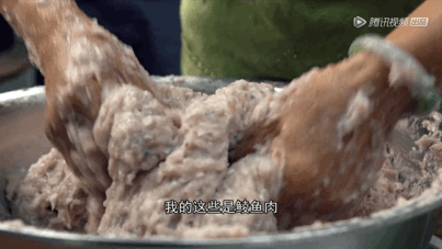 店里的招牌鱼饼也不能错过,每个鱼饼都是经由老板娘亲手制成。选择新鲜的鲮鱼肉,制作手法十分讲究,想要制作出有嚼劲的鱼饼,”抓搅搓甩“每一道工序都不能省略。将鱼肉抓碎后搅拌到搅不动,再不断的揉搓,用足够的力度甩动鱼肉。
