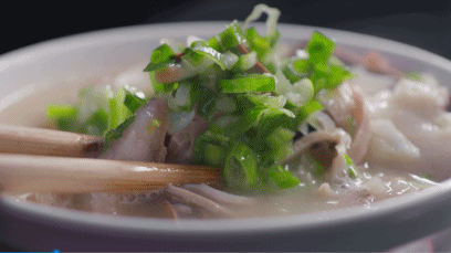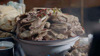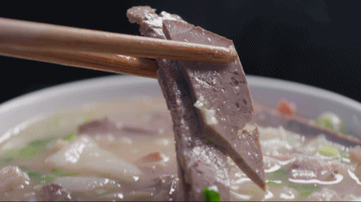 千里铁府,万里荫城。谈及美食,唯有猪汤。山西荫城有这样一家开在路边的小摊,老板李春生卖了三十多年的猪汤,每天早上3点,他就起床开始搬货,因为5:20天还未亮便要迎来第一批食客。5元一碗还能免费续一碗汤,一天仅限量500碗。小小一个碗里放上满满的口条、猪心、瘦肉、猪肝、蹄子、猪肠,用汤浇热,再撒上葱放点醋,最后淋上浓郁的汤头,激发出了葱的香味。