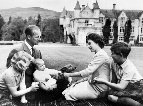 ▲1960年9月8日,英国女王伊丽莎白二世(右二)和丈夫菲利普亲王(左二)、查尔斯王子(右一)、安妮公主(左一)及安德鲁王子(中)
