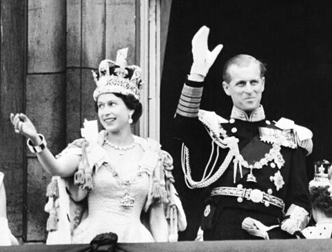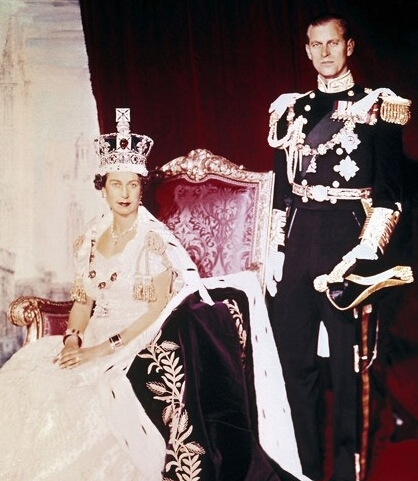 ▲1953年6月2日,英国女王伊丽莎白二世(左)在举行加冕典礼时和丈夫菲利普亲王在伦敦白金汉宫合影。