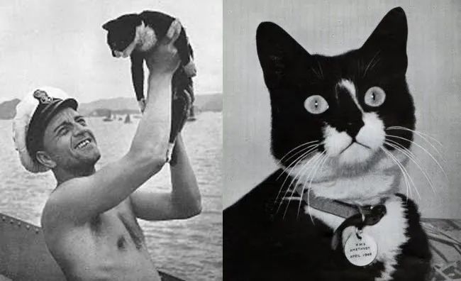 1941年5月27日,英国舰队击沉德国俾斯麦(Bismarck)号战列舰后,救起的落水“俘虏”中就包括这只在舰艇上生活的猫咪。
