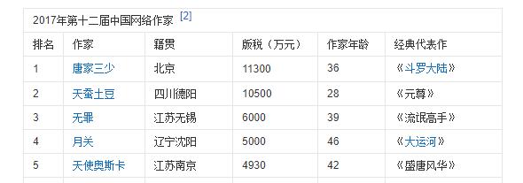 比如在IP的源头网文领域,位列2017年中国网络作家富豪榜前几位的唐家三少、天蚕土豆、无罪、月关等,无一不是男频文学创作中的佼佼者。