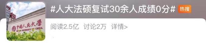 4月7日,中国人民大学法学院公示了2021年法律硕士招生考试复试成绩。多名考生成绩为0分,引发关注。