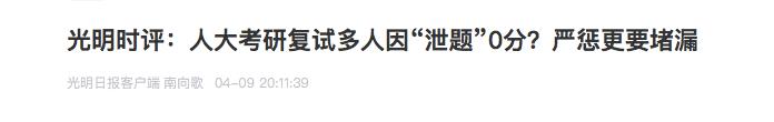 光明网评论员:人大考研复试多人因“泄题”0分?严惩更要堵漏