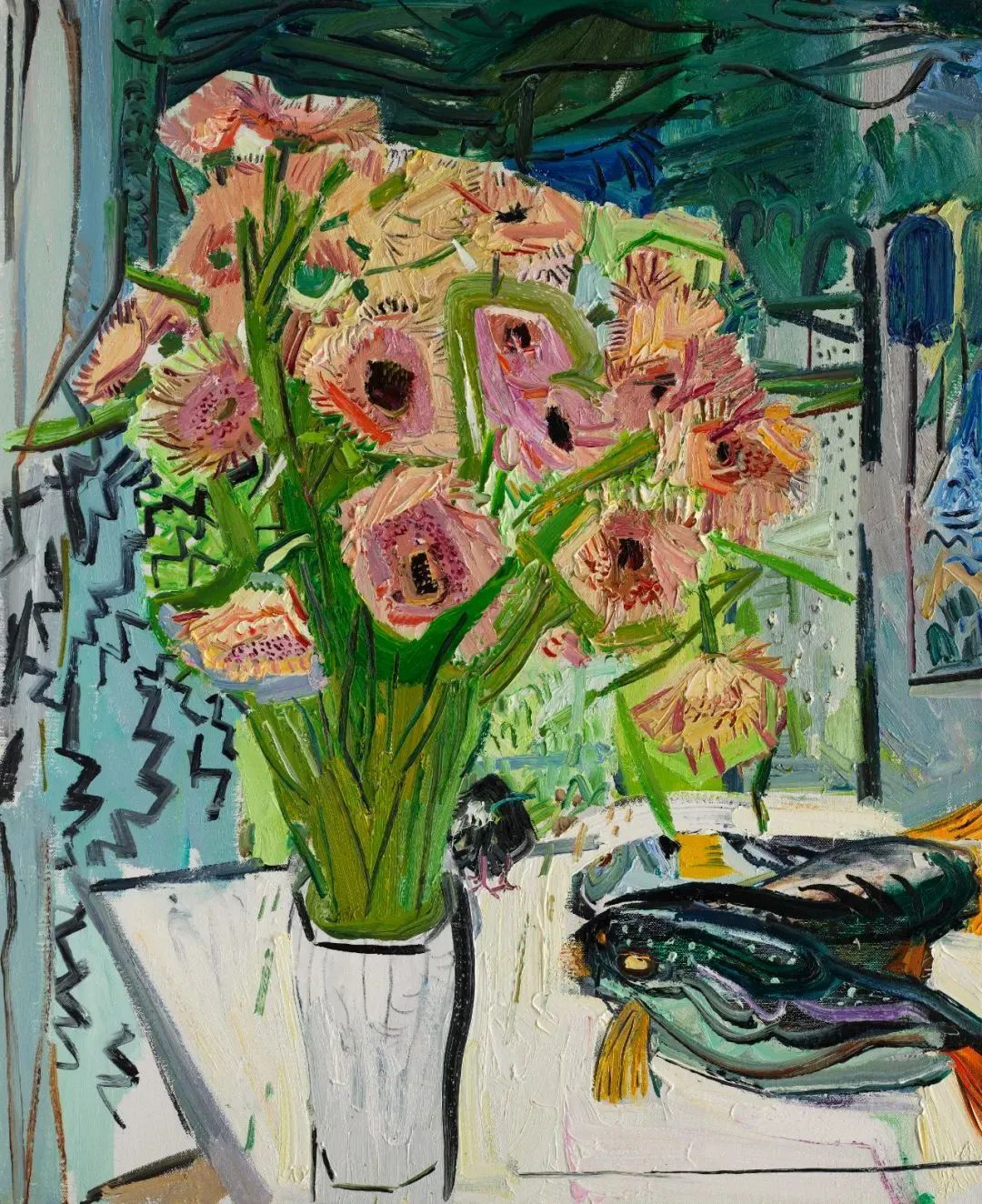 闫平《海边的花和鱼》 80x100cm 2020年图像中温情的力量