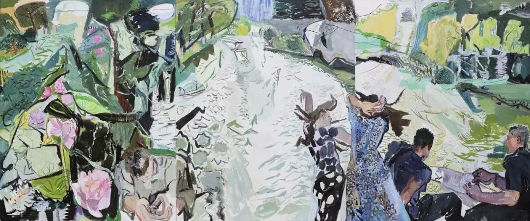 闫平《大明湖之春》 布面油画 200×160cm×3 2020年