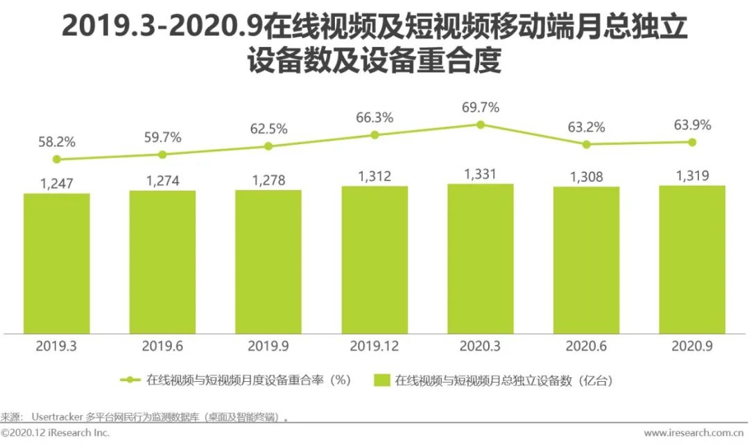 受众:视频内容服务已成互联网时代全面消费数字技术与互联网技术的普及,降低视频内容的消费成本,并同时促进视频内容供给端的繁荣,二者共同推进内容消费的繁荣。根据mUserTracker显示,从2019Q1-2020Q3,我国在线视频移动端渗透率维持在75%以上,短视频渗透率从65.4%上涨至74.3%;同时,同期在线视频与短视频保有较高的重合度,体现当下用户视频内容消费个体兴趣的多样化。繁荣的视频内容消费下,用户不断泛化,庞大的用户基数使群体内画像不再有单一的“主流人群”,从消费端驱动视频内容的垂直化发展,并进一步反馈供给。