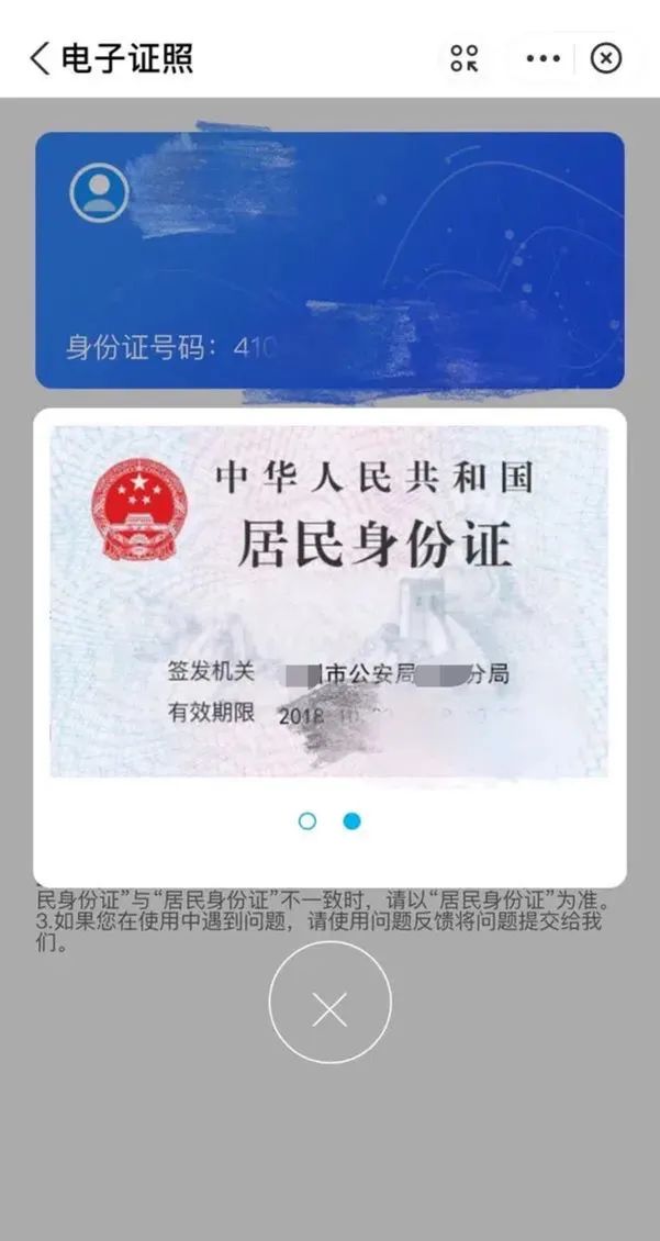 河南省“电子居民身份证”处于测试运行阶段。“电子居民身份证”与“居民身份证”不一致时,请以“居民身份证”为准。