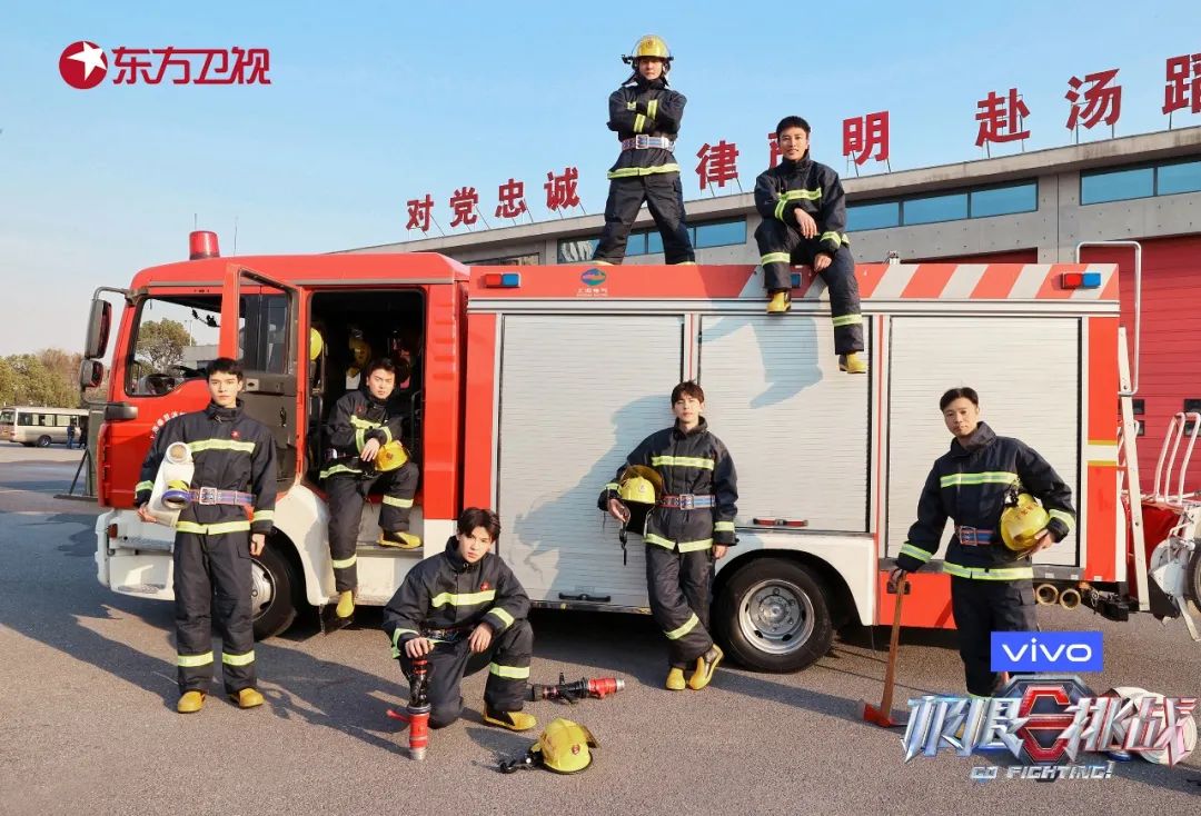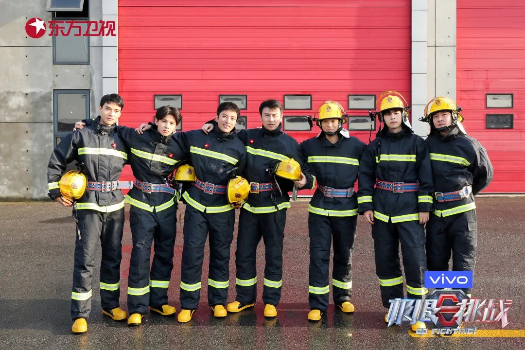 两位“素人”消防官兵对着同处一车的雷佳音、王迅、贾乃亮、郭京飞、邓伦、黄明昊所组成的“极限男团”和嘉宾龚俊介绍他们所处的上海市消防救援总队的工作体量。