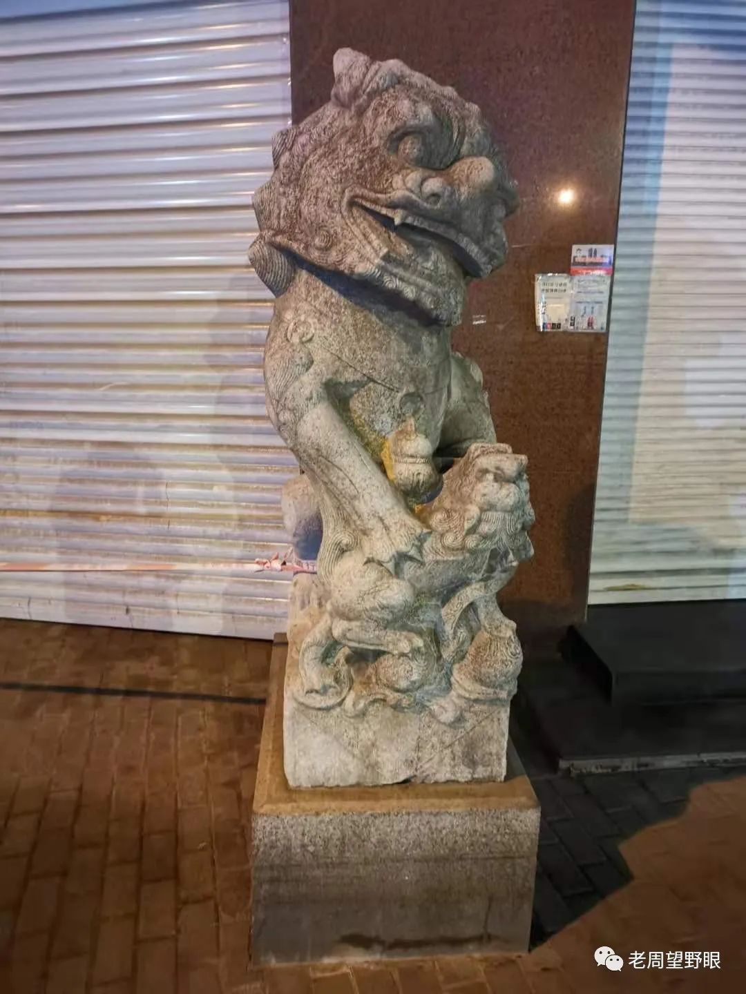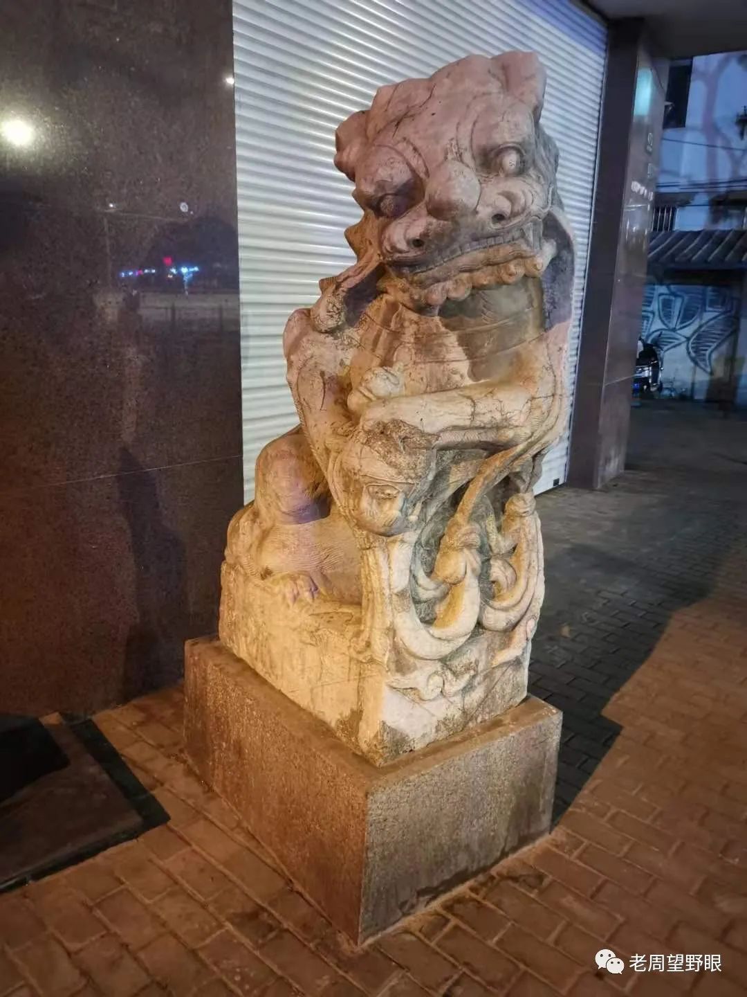 如果没有工作,吃好夜饭我喜欢四处走走散散步,很多时候出门时并无目标,走着走着就会往南市方向,那里仿佛有某种魔力,磁石一样吸引我。前两天我写了一篇,说到东江阴街上两座寺庙旧址,收到不少朋友的留言回复,让我增长很多知识。或许因为这个原因,前天晚上我又到陆家浜路、桑园街、东江阴街和柳市路一带走了走。最近一段时间南市旧改动作很大,很多老房子封了门,有些已经拆除。这些房子或许已经不适合居住,但毕竟这里承载了上海的历史。我希望为上海多留下一点记录,让后来居住在高楼大厦里的人们知道这块土地上曾经的生活状态是怎样的,我希望我的这点小心愿和当地居民改善生活的愿望没有冲突。一边这么想,一边走到陆家浜路,忽然被我发现一家证券所的门前有一对石狮子,凝神观看,颇有古意,绝非凡品。