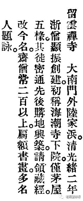 1922年(民国十一年)《上海指南》中“留云禅寺”词条