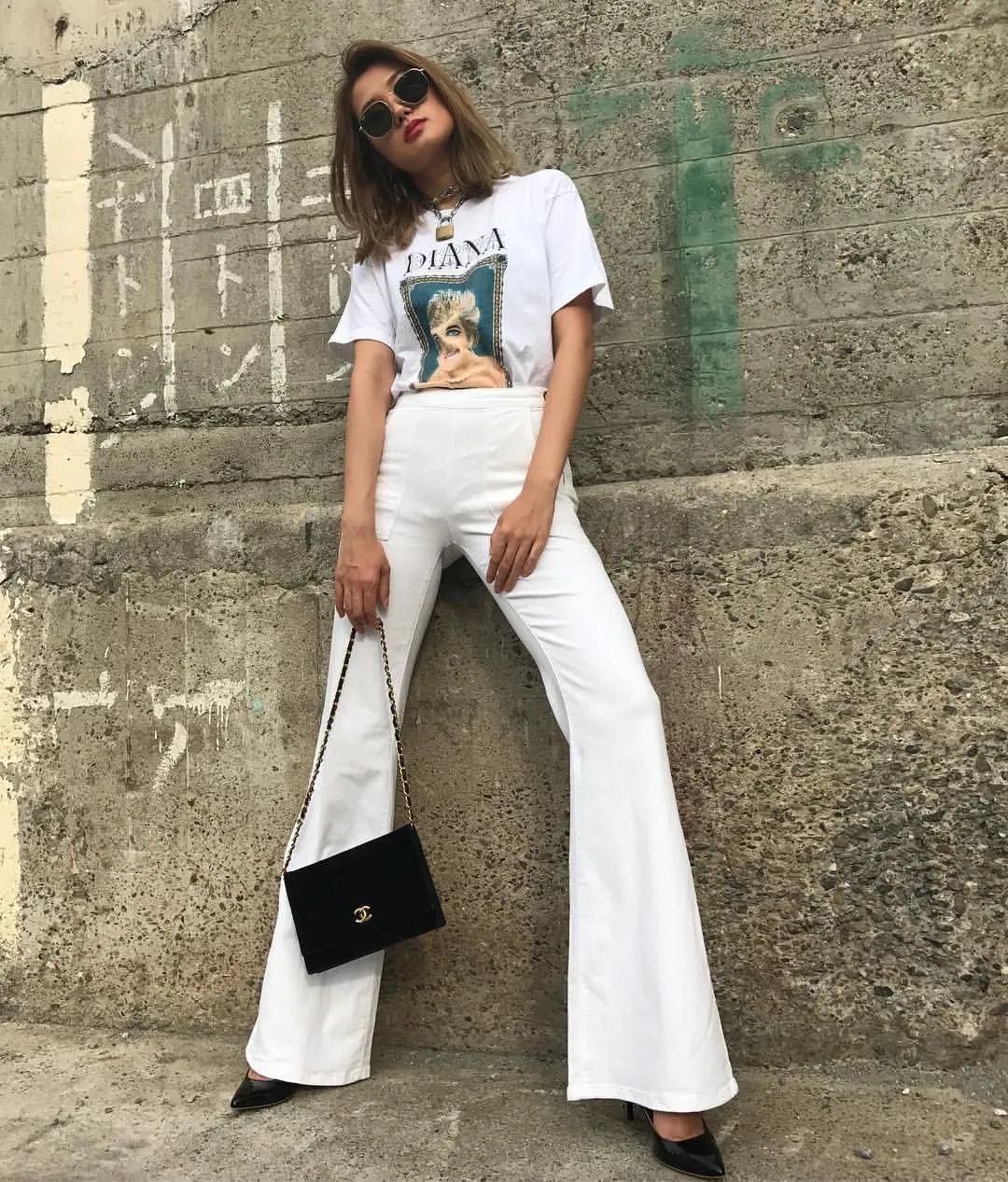 人人都有的T恤,可以说是衣橱里最百搭的单品了,它和喇叭裤同样也可以轻松适配。