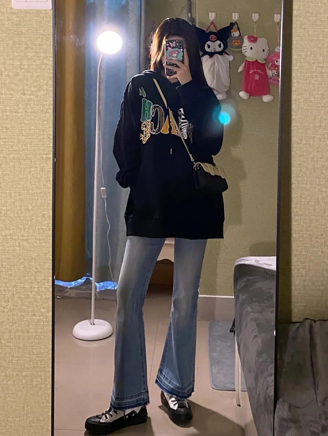 图片来自小红书卫衣自带的休闲气息,加上喇叭裤的复古质感,结合在一起瞬间变得日常又有调性。