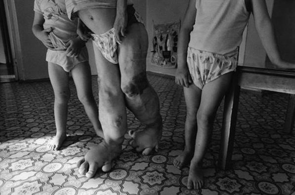 (受到核辐射出生的畸形儿童,图源:Paul Fusco)如今,在切尔诺贝利周边地区生活的人当中,生来不久即患癌症、具有出生缺陷的概率非常高。