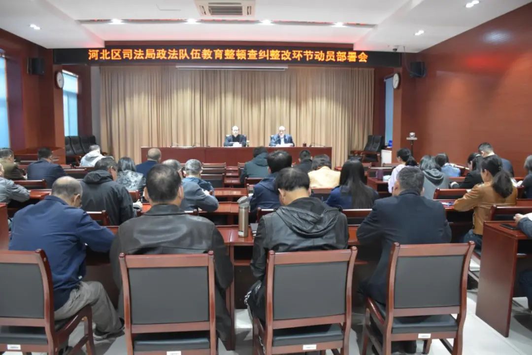 河北区司法局召开政法队伍教育整顿查纠整改环节动员部署会。