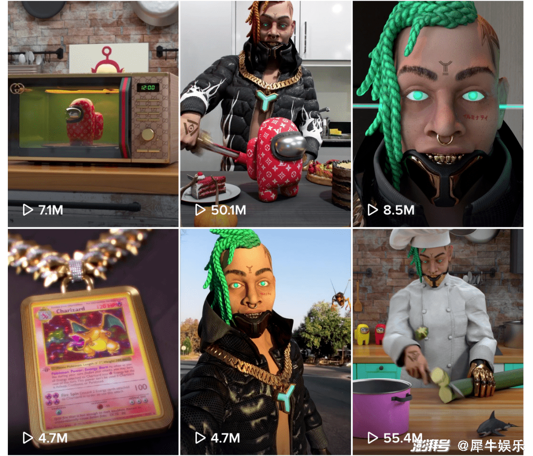 比如全球首个AI说唱歌手FN Meka,除了发歌之外,他还常年在TikTok上发布生活视频,比如跳街舞、开跑车、做饭等等,以新奇搞怪的方式获得了相当高的热度。这其实形成了一种创作者与粉丝默契,即基于二次元认同的、寄托在虚拟偶像身上的想象共同体,一段CGI程序在这种想象中成为近乎全能的优质偶像。
