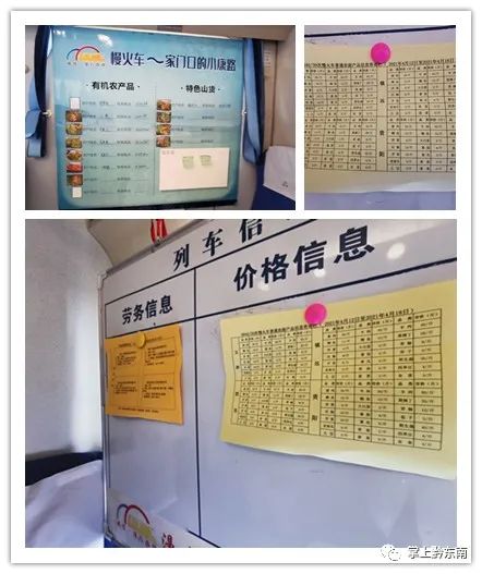 为了更好地帮助老乡们,列车的6号车厢设置了一块“列车信息交易版”,上面有沿线地区商品价格信息、交易联系信息和城市的劳务信息,信息每周更新。“每一位卖菜的乡亲,都能清楚的知道其他地区的菜价,还有些乡亲会把自己的联系方式留下,需要采买的客户看到会主动联系他们,上面还发布了招聘信息,想要进城务工的人可以随时联系。”胡贵川说。