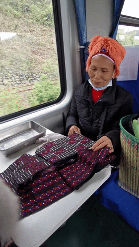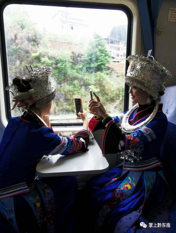 在返程的5640列车上,大寨的雷阿姨心情愉快地摆弄着自己的苗绣工艺品:“我们坐这趟车有三十多年了,每天靠这趟车往返凯里和大寨,虽然有班车可以去凯里,但我还是愿意坐火车。”雷阿姨说以前交通不便日子苦,后来开通了5639/40列车,她天天坐火车往返凯里卖东西,如今自己也当了老板,开了一家苗绣店,她的日子在一针一线的刺绣中、在滚动的车轮中,渐渐红火起来。咱们的“小慢车”陪着沿线老百姓们一步一步走出了一条脱贫致富的“小康路”。