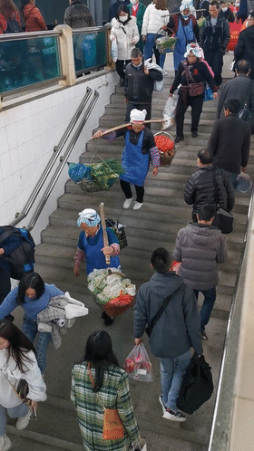 载着沉甸甸的希望出发,下午16点,扁担空空却收获满满的乡亲们又踏上了返程的列车。