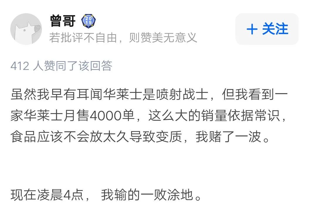 勇敢尝试华莱士的网友。/ 知乎想要挑战华莱士的人们,最后都会在马桶上怀疑人生。更有人调侃说,吃完华莱士没有蹲马桶的,都不足以谈人生。