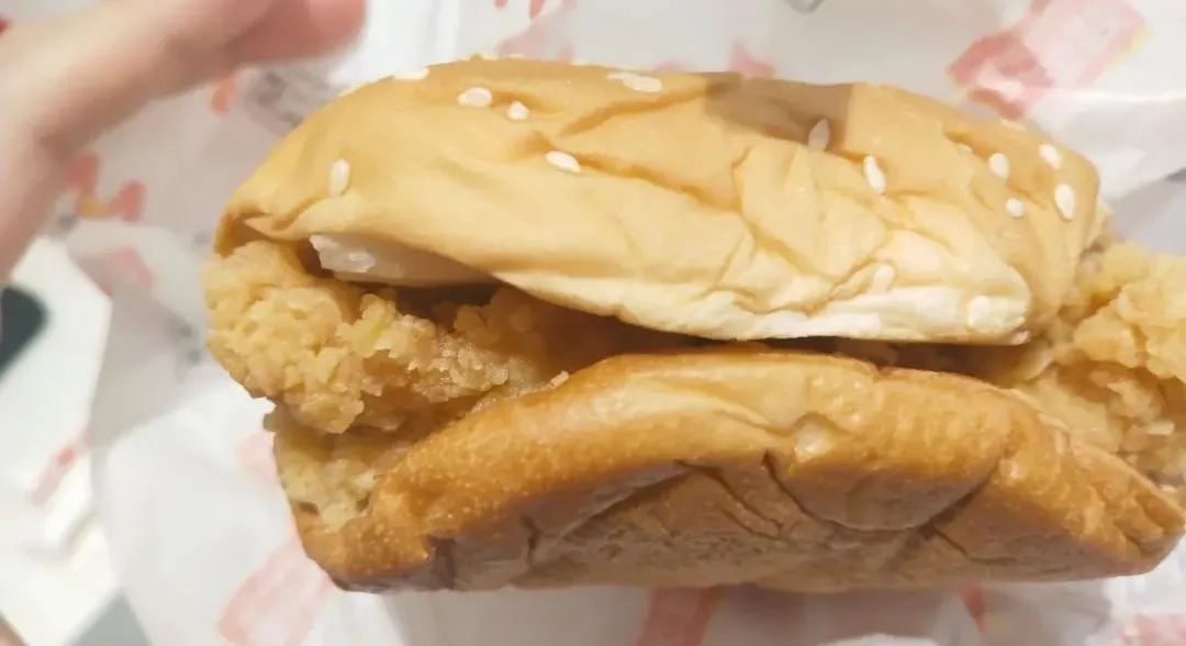2021年2月6日,湖北宜昌,华莱士汉堡。/ 图虫创意小新同学点的香辣鸡腿堡,面包看起来皱巴巴的,鸡肉是比较多的,外表比较酥脆,里面的肉质比较嫩,没有什么异味,蔬菜几乎看不到。